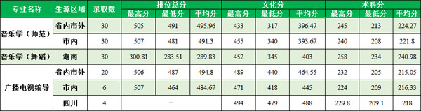 根据各省投档规则出档后,艺术类统考专业,根据考生投档总分排序情况从高到低择优录取。在考生符合专业要求的基础上,实行“分数优先”的原则,优先录取投档总分排位在前的考生,再录取投档总分排位在后的考生。考生投档总分相同时,按照考生排位择优录取。当考生排位相同时,优先录取修习相关专业基础知识(模块)的考生。