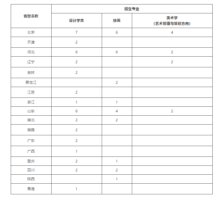 我校艺术类(美术)专业招生不组织专业校考,绘画、设计学类、美术学(艺术管理与策划方向)三个招生专业的专业考试成绩,均采用省级招生考试机构统一组织的美术学类和设计学类(素描、速写、色彩类)专业统考成绩。考生须按所在省级招生考试机构的要求参加专业统考。