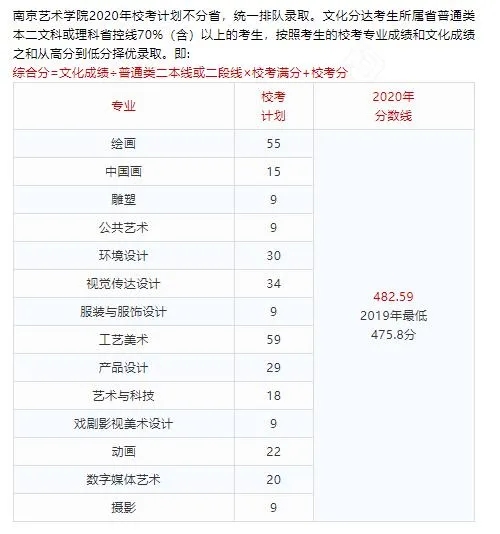南京艺术学院2020年省外美术类本科专业录取分数线