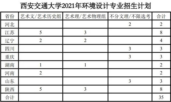 2.招生计划:不超过35人,详见附件《西安交通大学2021年环境设计专业招生计划》(最终招生计划以经教育部审核后各省级招生考试机构公布的为准)。