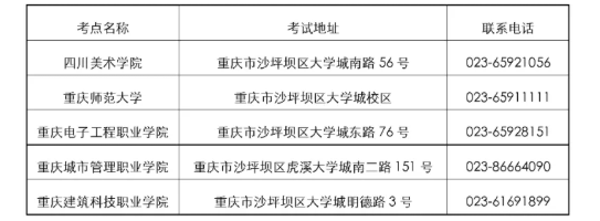重庆市普通高校招生美术类专业统考考务办公室设在四川美术学院招生处。