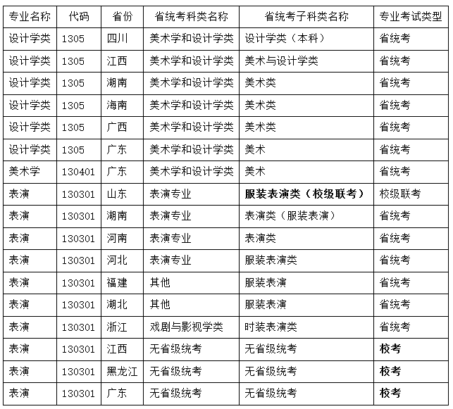1.采用省统考(或校级联考)考试方式且按照平行志愿艺术类计划1:1出档的省(自治区、直辖市)的相关专业: