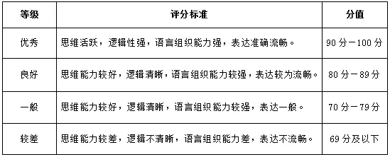 通过话题的评述考查学生的思维反应及语言组织能力。判断学生的认知能力、发散思维能力和语言交流能力等综合水平。