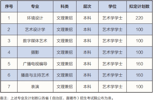 二、艺术类招生专业一览表及专业介绍
