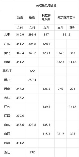 中国戏曲学院2020年美术类统考专业录取分数线