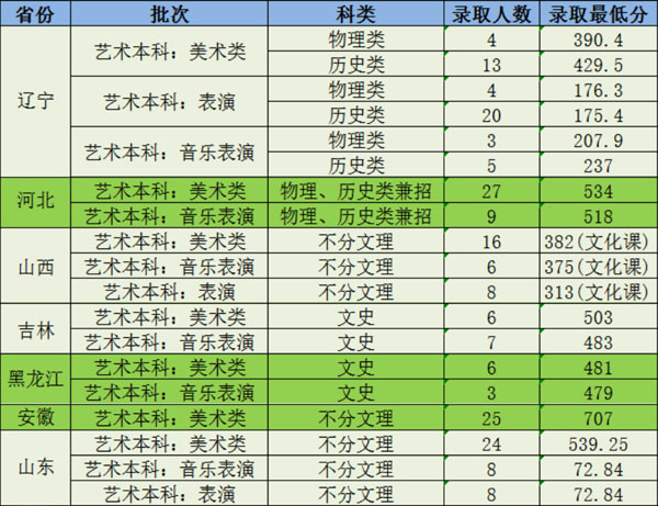 我校艺术类专业所在招生省份有统一的录取规定及原则与上述学校录取原则不一致时,以招生省份的原则为我校的录取原则。
