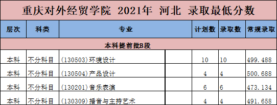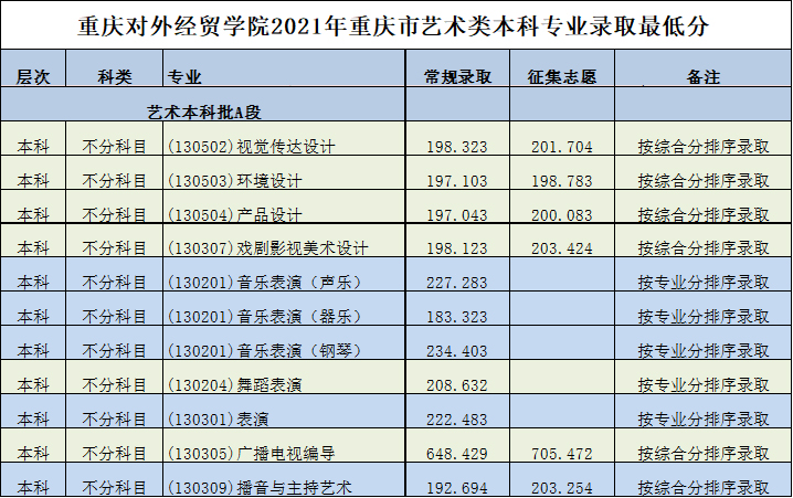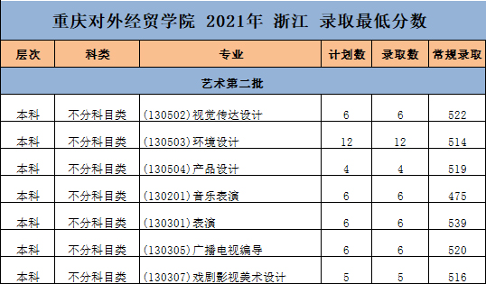 重庆对外经贸学院2021年艺术类本科专业录取分数线