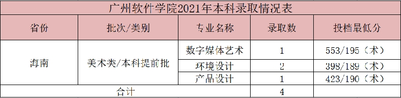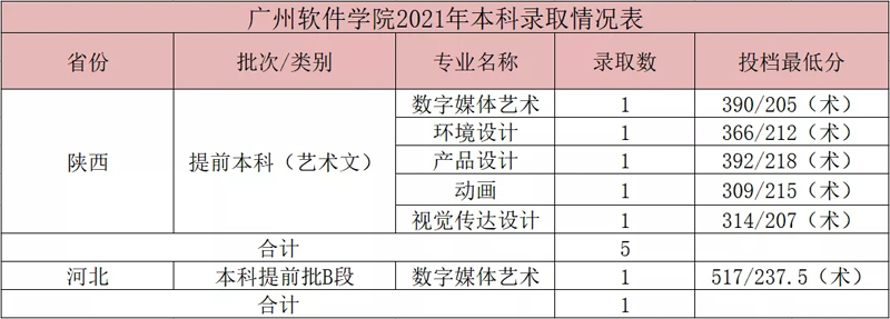 广州软件学院2021年美术类本科专业录取分数线(7月30号更新)