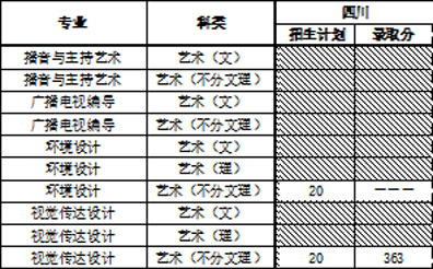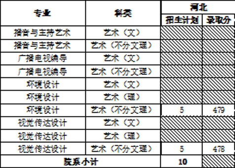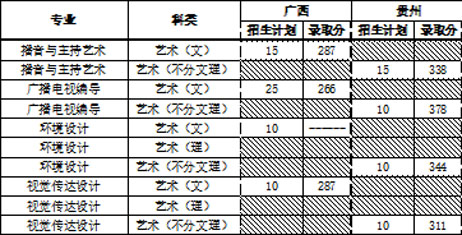 视觉传达设计专业、环境设计专业的考生要求参加各省招生办组织的专业课统考且成绩合格,高考文化课成绩达到各省招生办划定的分数线,录取时按专业课成绩从高到低择优录取,若专业课成绩相同,则按照文化课成绩从高到低择优录取。