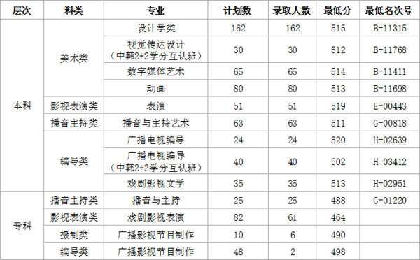 我校美术类、影视表演类、编导类、播音主持类、摄制类等的艺术专业均采用各省艺术类专业统考成绩,不另行组织校考,报考对象和条件参照各省艺术类统考安排和要求执行,以生源所在省统考投档录取规则为准,如生源所在省未定录取规则,则按照以下规则录取: