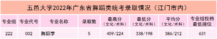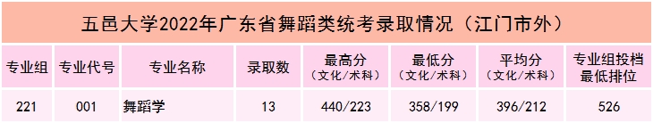 五邑大学2022年艺术类本科专业录取分数线(7.22更新)