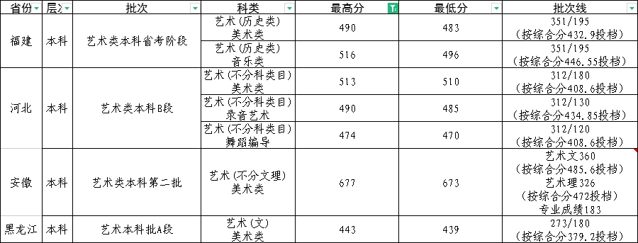 4.山东省外艺术类专业,高考成绩达到考生所在省份规定的艺术类文化录取控制分数线,按考生所在省份招生政策执行。