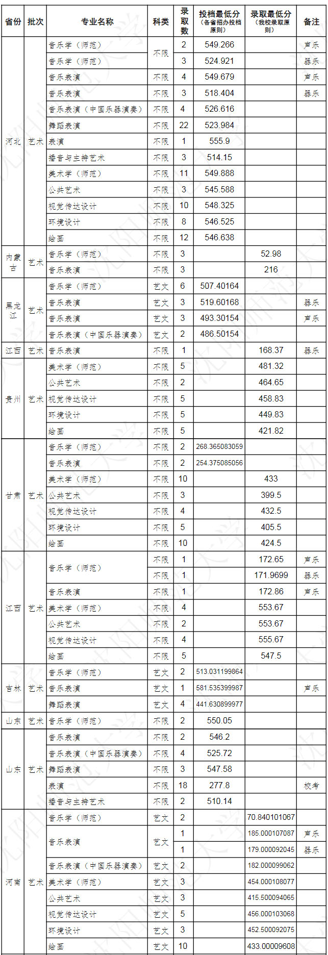 沈阳师范大学2022年艺术类本科专业录取分数线(7.22更新)
