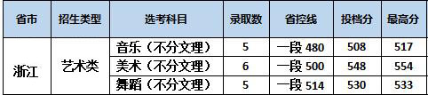在采取传统志愿投档模式的省(自治区、直辖市),对于报考美术学(师范)、视觉传达设计、服装与服饰设计且高考文化分和专业分均达到生源所在省(自治区、直辖市)同批次最低控制分数线的进档考生,按综合分从高到低排序择优录取,若综合分相同则按艺术统考专业分从高到低的顺序择优录取,各专业志愿之间不设分数级差,综合分算法为:高考文化课成绩×40%+专业统考成绩×60%;对于报考音乐学(师范)、音乐治疗且高考文化分和专业分均达到生源所在省(自治区、直辖市)同批次最低控制分数线的进档考生,按艺术统考专业分从高到低的顺序择优录取,若专业分相同则按高考文化分从高到低的顺序择优录取,各专业志愿之间不设分数级差。