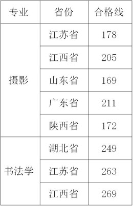 3.我校不单独发放纸质专业合格证,考生成绩达到我校相应专业合格分数线即可报考我校;湖北省书法学专业使用湖北美术学院校考成绩,考生须同时在我校和湖北美术学院报名,并达到我校划定的合格分数线方可报考我校。
