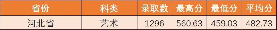 (1)河北省:考生按照专业成绩排序从高到低录取,专业成绩相同者按照文化成绩较高者录取,文化成绩相同者按照语文、数学、外语顺序成绩较高者录取。