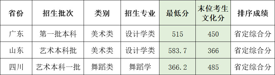 考生高考文化成绩须达到生源所在省份对应类别艺术类本科文化录取控制分数线。