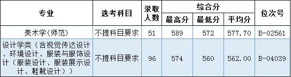 浙江省:美术学(师范) 572、设计学类560,平行志愿投档分=高考总分×0.5+统考成绩×7.5×0.5