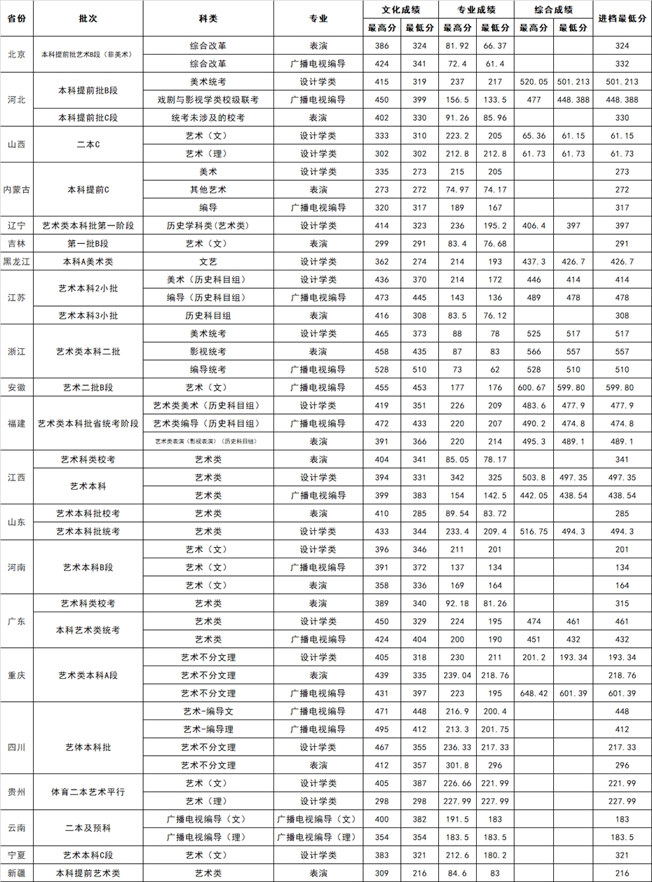 (二)对于取得学校相关艺术类专业校考合格证的考生,在文化成绩达到所在省(自治区、直辖市)相应批次录取控制分数线后,按照校考成绩从高分到低分择优录取。对于未组织专业校考的省份考生只需参加相关专业省统考(联考),考生文化成绩达到所在省相应批次录取控制分数线后,按照考生省统考(联考)成绩从高分到低分择优录取。