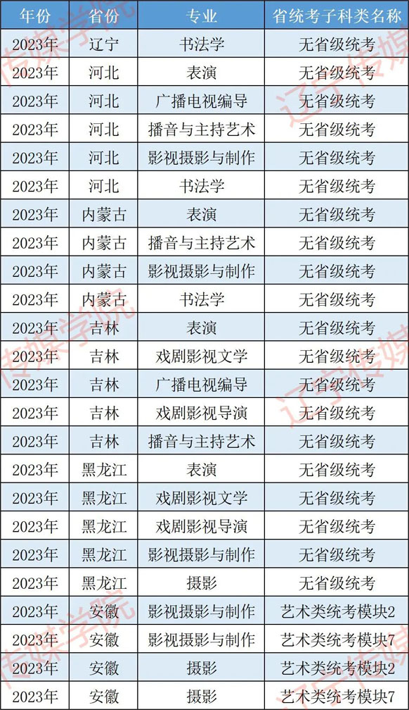 三、辽宁传媒学院2023年艺术类校考专业子科类对照