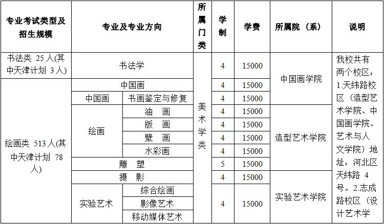 七、学费和待遇:我校录取新生的学杂费和在学期间的待遇,美术高考画室均按国家有关规定办理。1.学生应按照规定每年按时缴纳学费,未经学校批准,学生不得拖欠学费、住宿费,否则按国家及学校有关规定处理,天津市内六区新生(以高考报名地为准)原则上不提供住宿。教材及住宿等其他费用,详见录取通知书。2.我校实行学年奖助学金和助学贷款相结合的办法。特困家庭学生按规定可申请助学贷款(最高额为12000元/年),鼓励学生在生源地申请助学贷款。3.由于美术院校学费较高,请考生报考时考虑自身经济承受能力,慎重报考。
