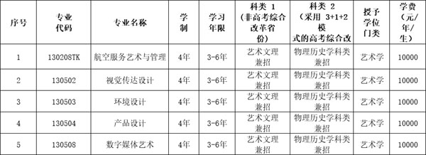 (1)视觉传达设计、环境设计、产品设计、数字媒体艺术、航空服务艺术与管理本科专业学费标准 10000 元/年/生;