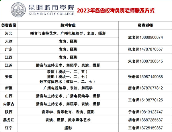 四、校考专业及各省负责老师联系方式