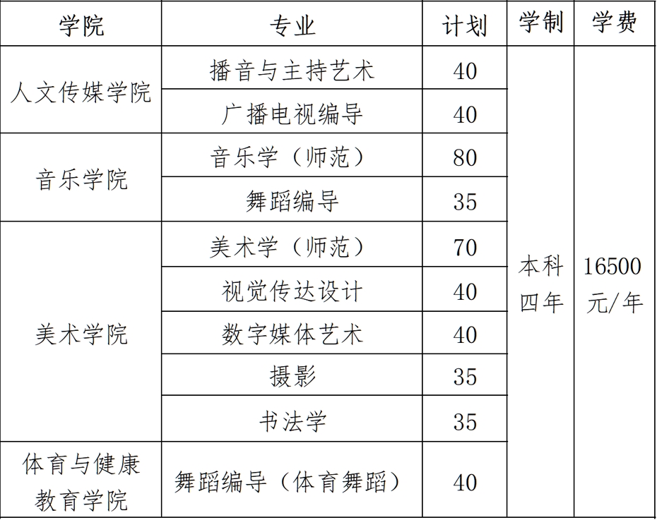 艺术类专业使用省级统考成绩,招生计划以各省级招生主管部门公布为准。