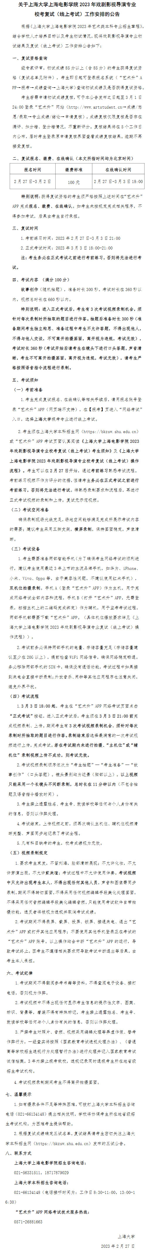上海大学上海电影学院2023年戏剧影视导演专业校考复试(线上考试)工作安排的公告