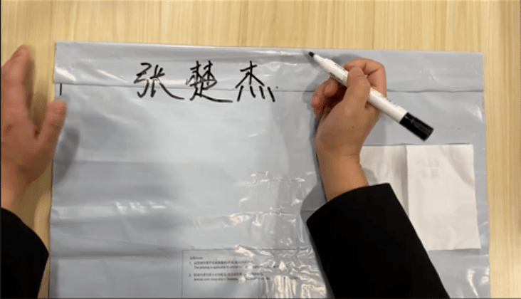 考试结束后,考生须按照监考老师和系统语音指令使用主机艺术升APP拍摄完整清晰的试卷照片并提交,美术培训学校可使用吹风机吹干试卷,在辅机钉钉APP视频监控下,将试卷装入包装袋并用胶带封口,同时在封口处用油性记号笔骑缝签名(如下图所示)。