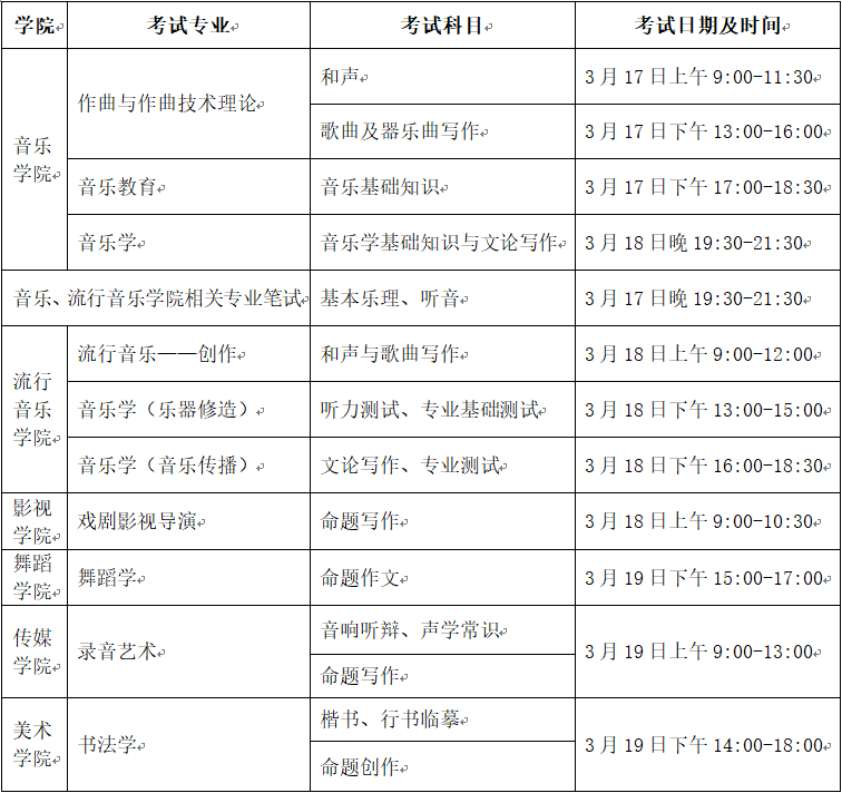 我校2023年本科招生专业校考现场考试定于3月17-19日进行,现将相关工作安排如下: