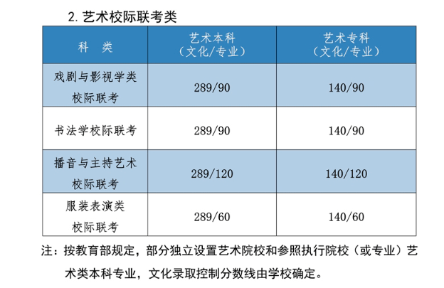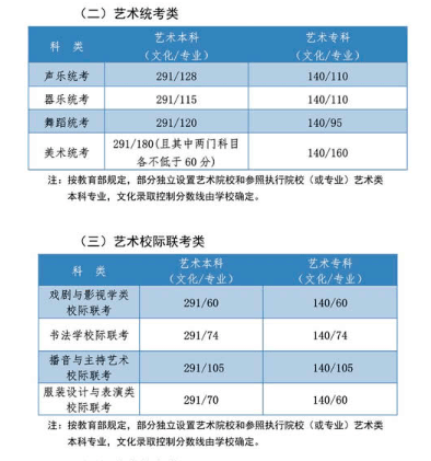 2.第二批:艺术(文)为328分;艺术(理)为314分。