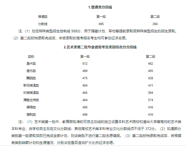 1.教育部批准的独立设置的本科艺术类院校,由学校自行划定录取分数线。