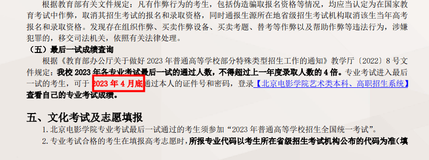 成绩查询地址:北京电影学院艺术类本科、高职招生系统