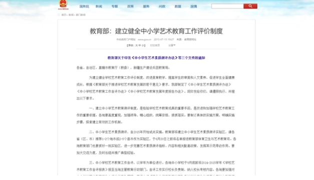 此外,教育部也将音乐、美术、舞蹈、戏曲、戏剧和书法等课程以及参与学校组织的艺术实践活动情况纳入学业要求,实现义务教育阶段学生基本具备1项艺术爱好。