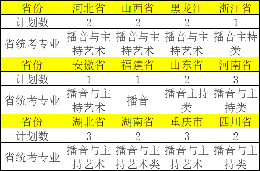 播音与主持艺术专业,本科,学制四年。2023年招生计划24人,拟分省招生计划如下(最终以各省级招生考试机构公布的招生计划为准)。
