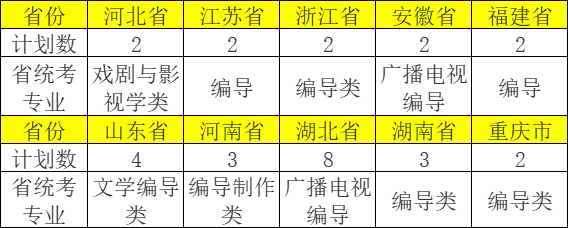 戏剧影视文学专业,本科,学制四年。2023年招生计划30人,拟分省招生计划如下(最终以各省级招生考试机构公布的招生计划为准)。