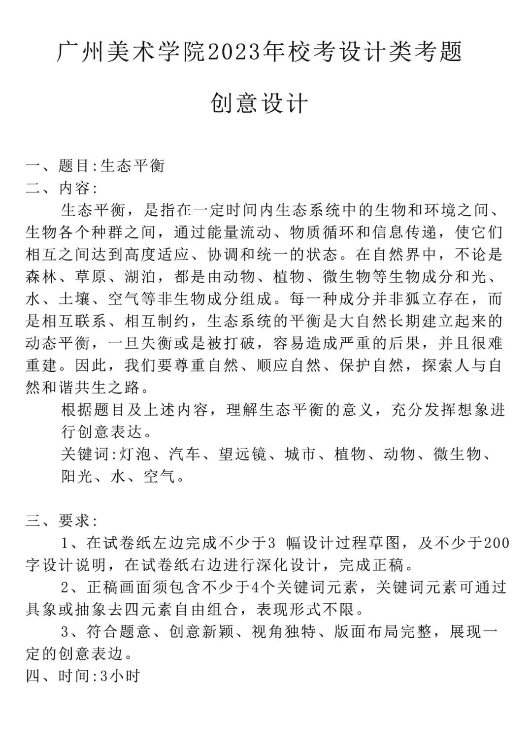 广州美术学院美术高考画室2023年设计类专业校考考题