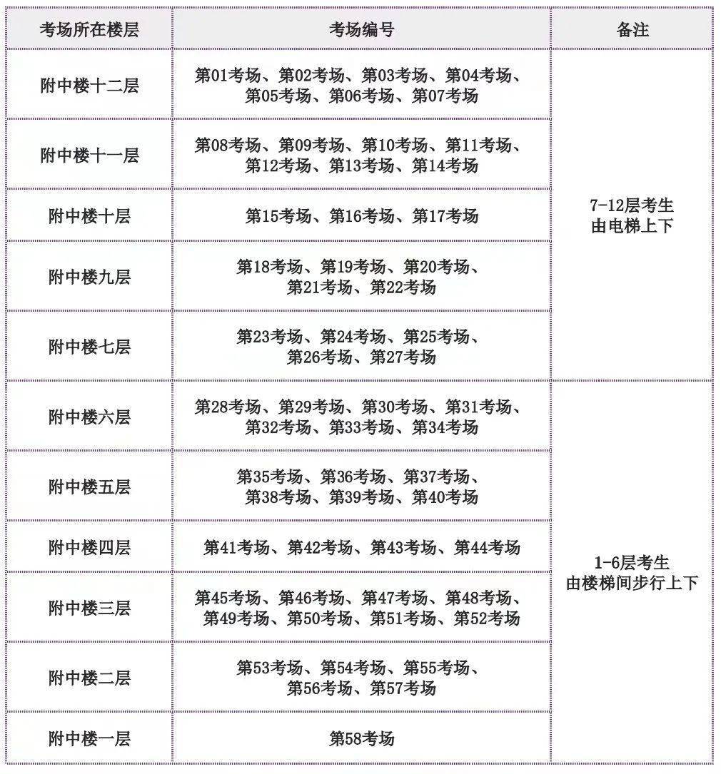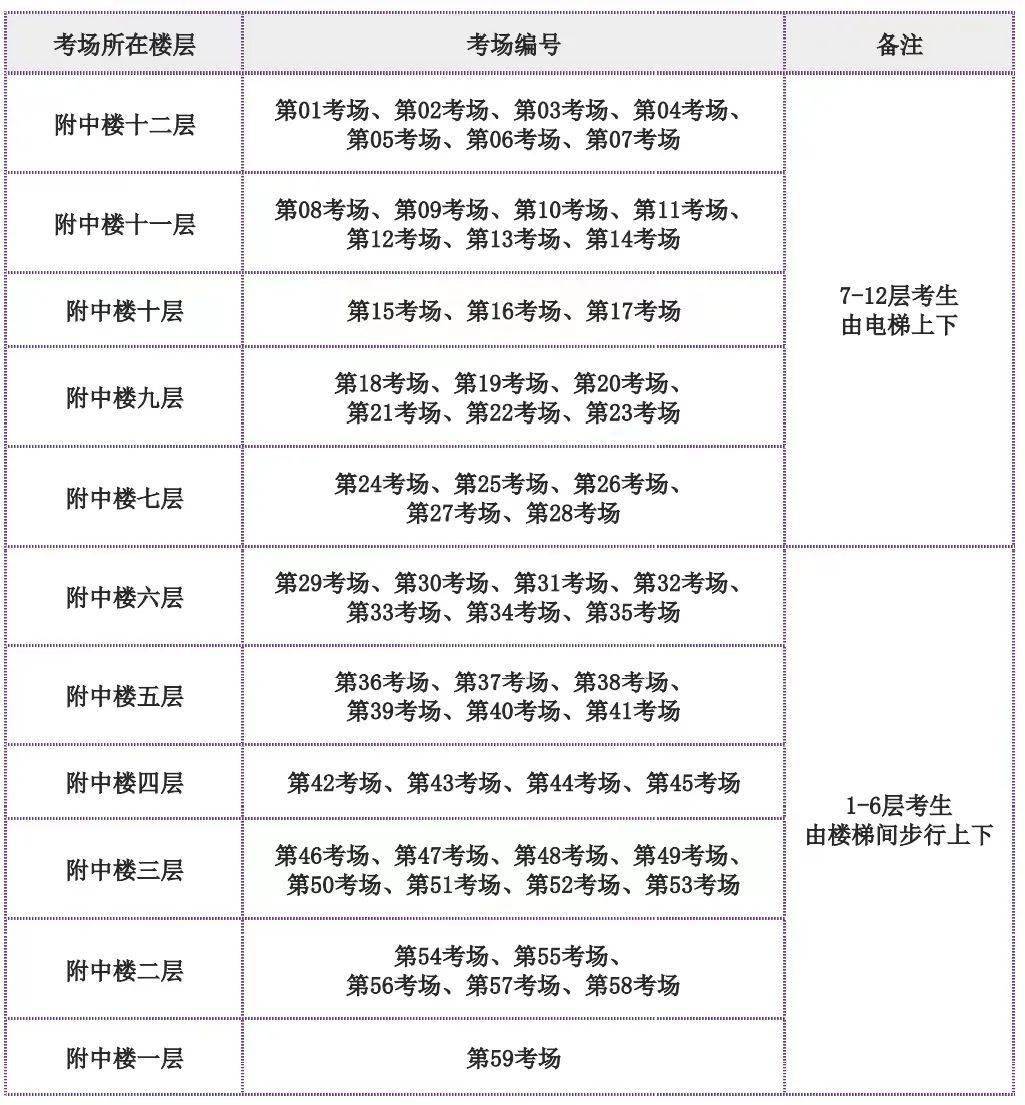 3.考生须持准考证、本人身份证(或带照片的户籍证明)原件进入附中教学楼,1—6层考场由楼梯间步行上下,7—12层考场由电梯上下。考生在对应的考场外排队,等待监考老师核验身份后抽签进入考场,按抽签号码对号入座。开考后30分钟,迟到考生不得进入考点和考场,按缺考处理。
